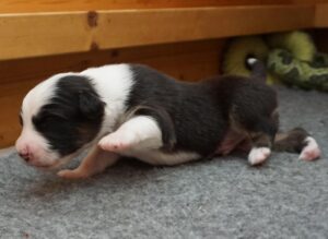 Als fünfter im J-Wurf wurde Jadoo geboren. Es war 2h 58 am 17. Mai 2024. Er ist ein black tri Rüde, der einer Mutter sehr ähnlich sieht. Gleich nach der Geburt wog er 316. Jadoo ist ein indischer Name und bedeutet „Magie“.