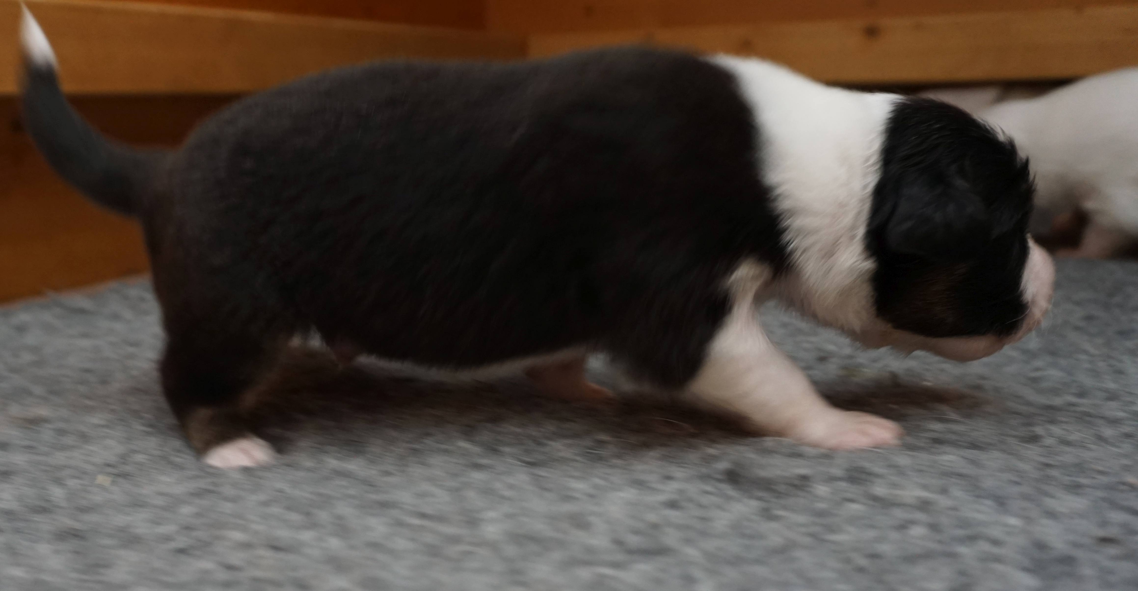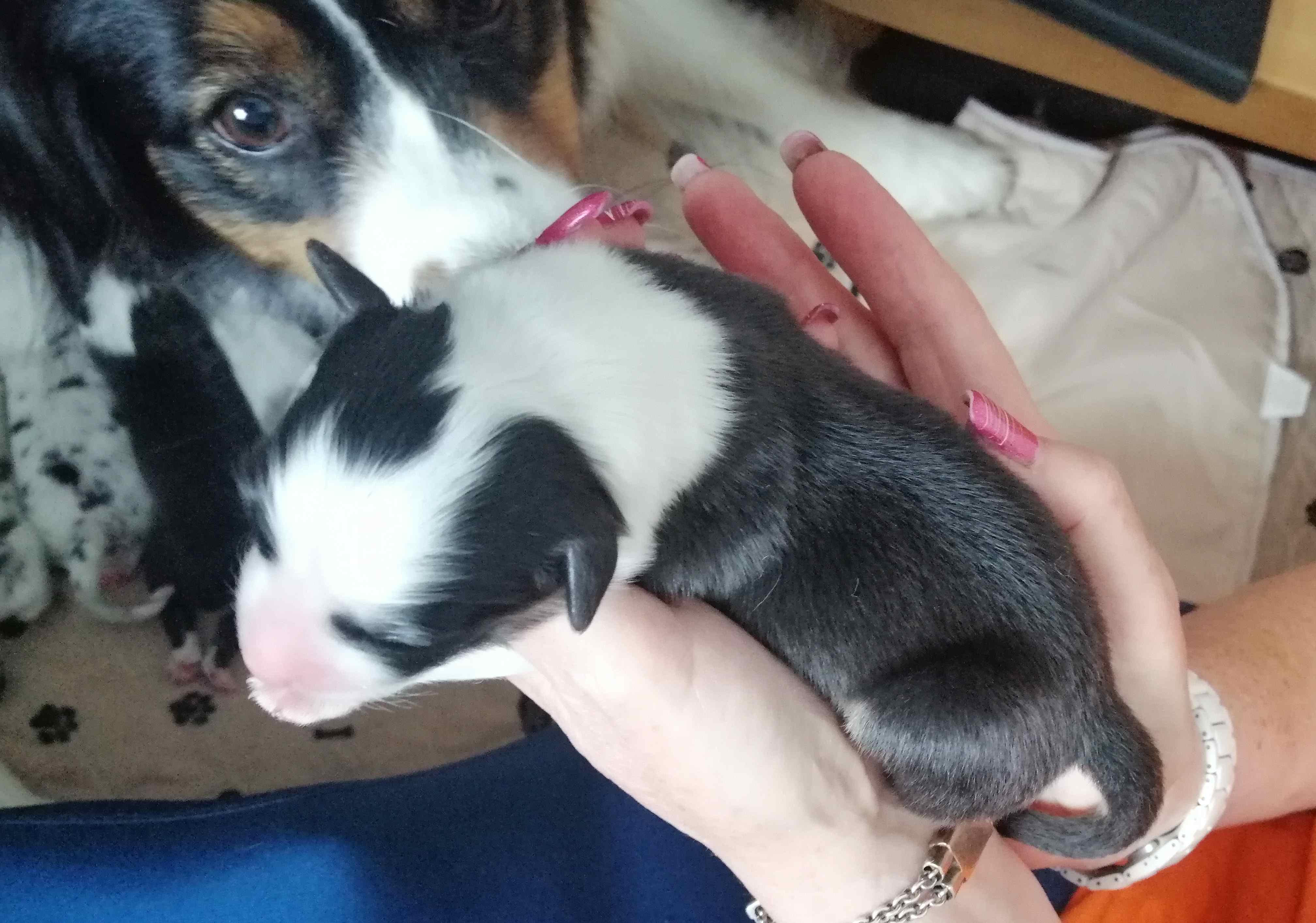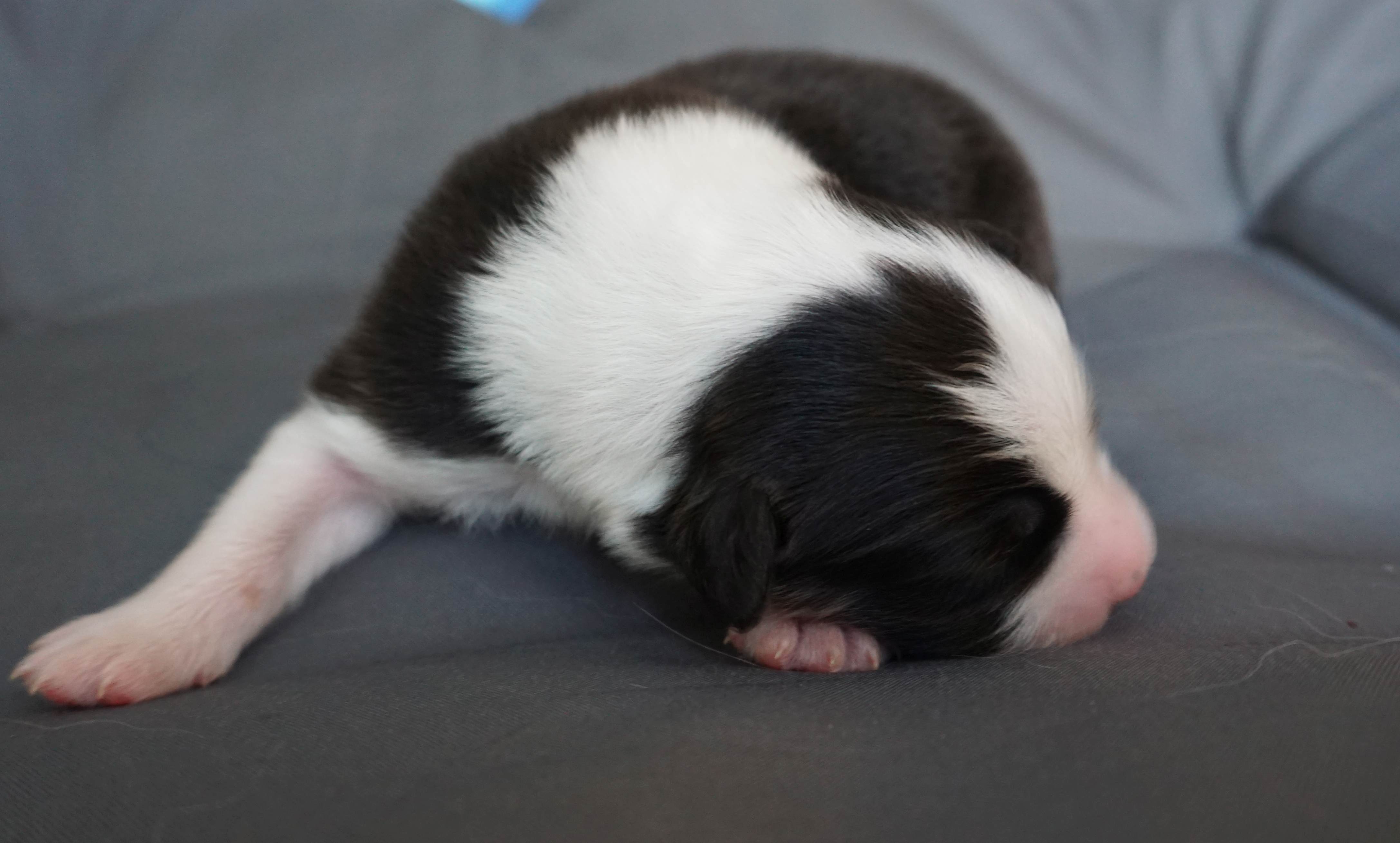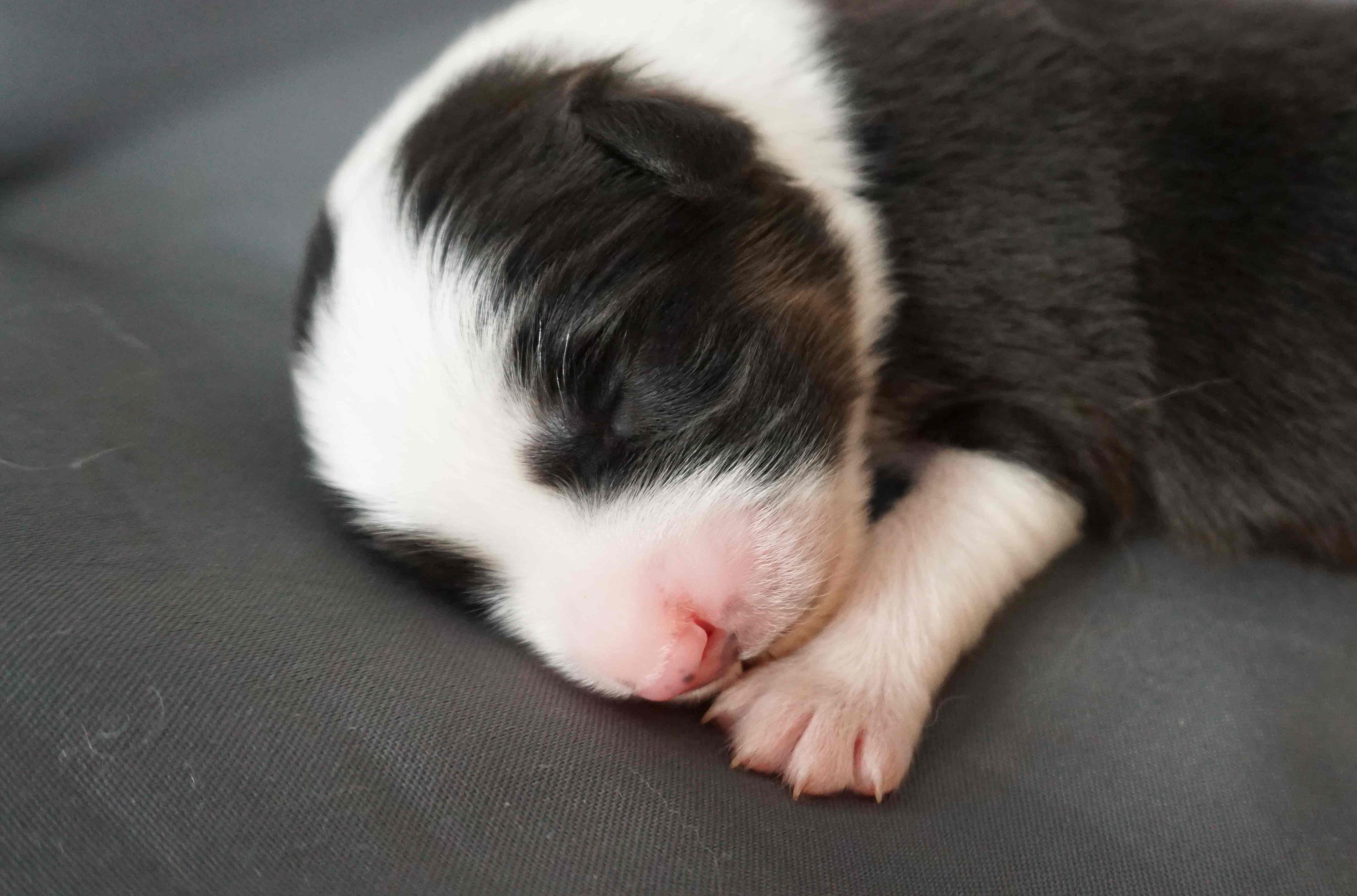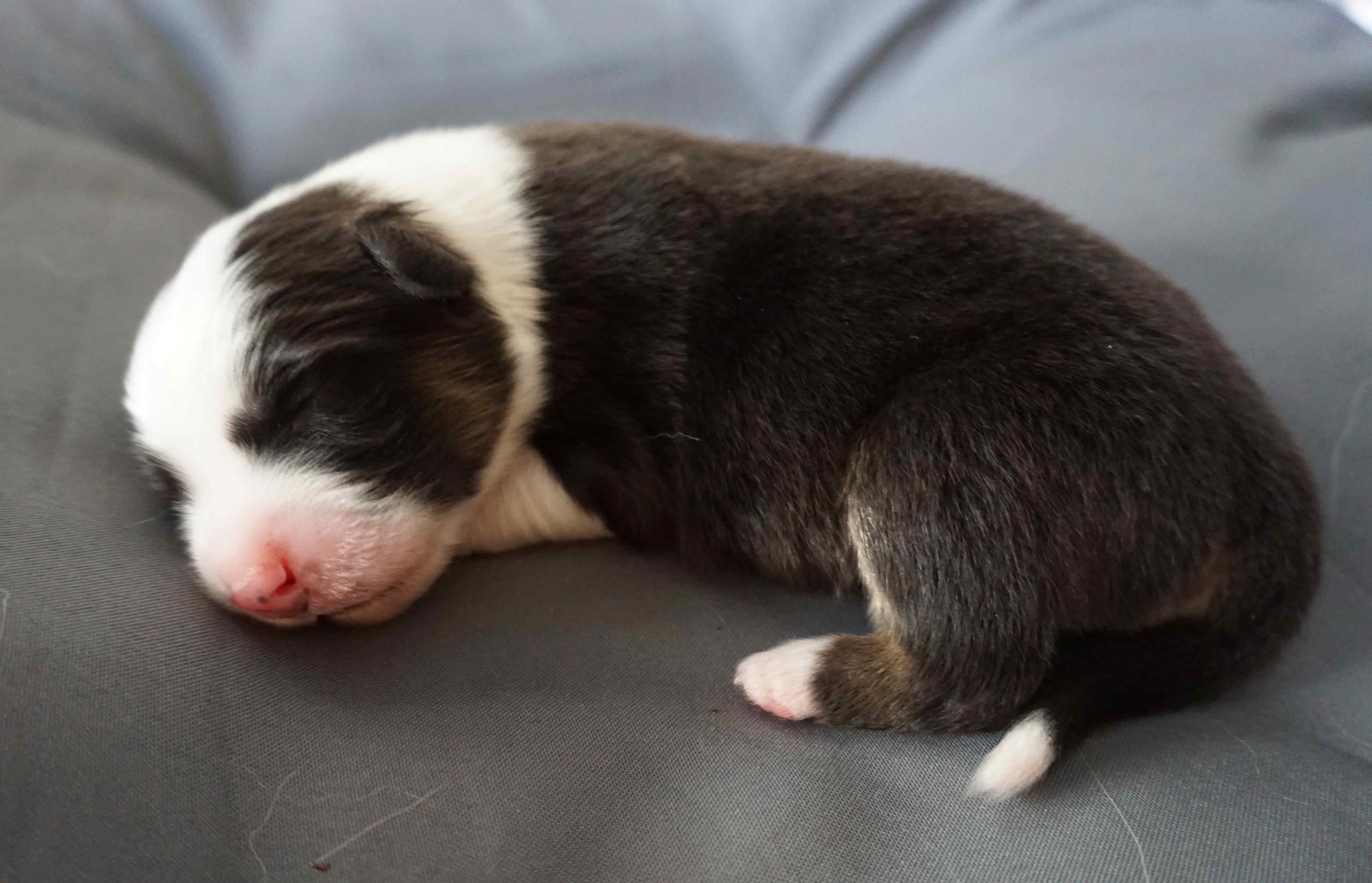 Als fünfter im J-Wurf wurde Jadoo geboren. Es war 2h 58 am 17. Mai 2024. Er ist ein black tri Rüde, der einer Mutter sehr ähnlich sieht. Gleich nach der Geburt wog er 316. Jadoo ist ein indischer Name und bedeutet „Magie“.