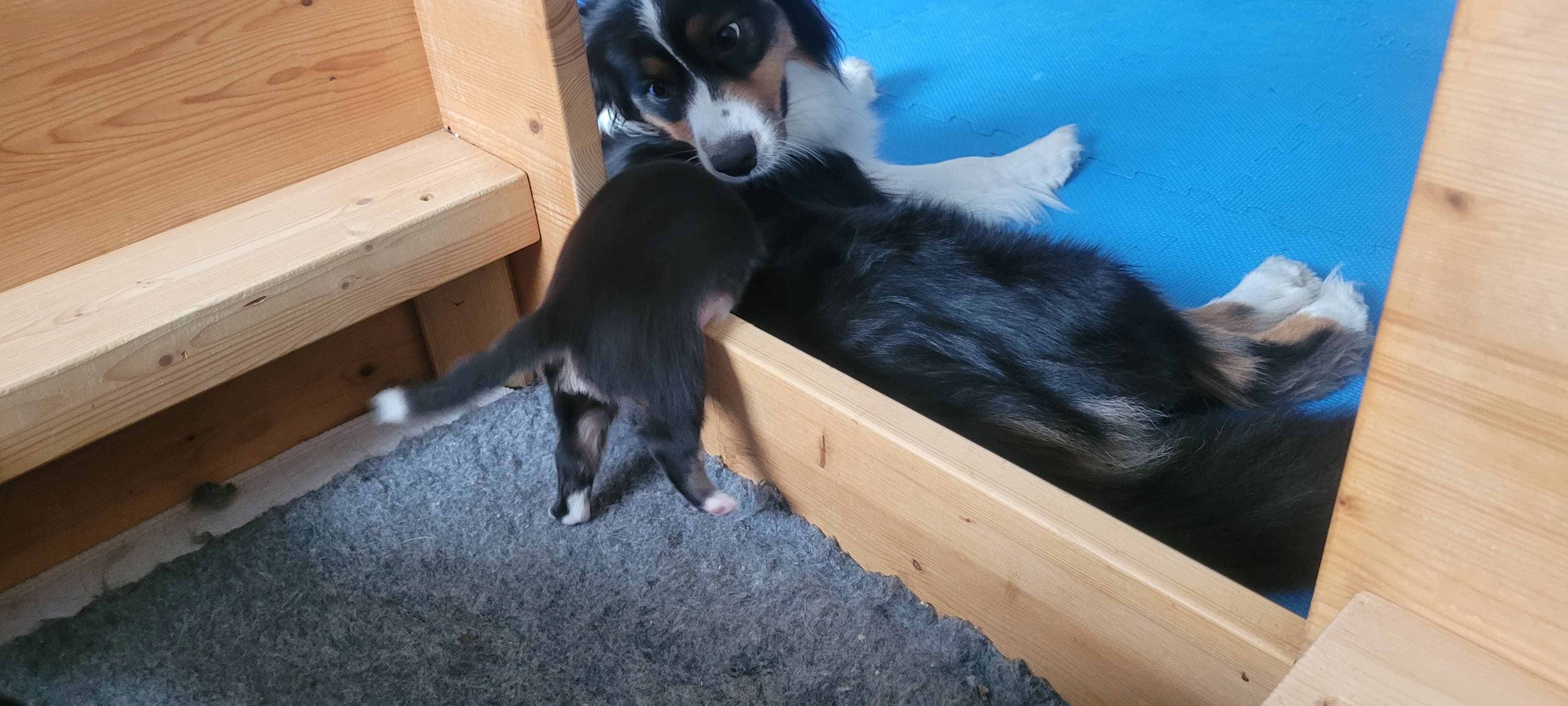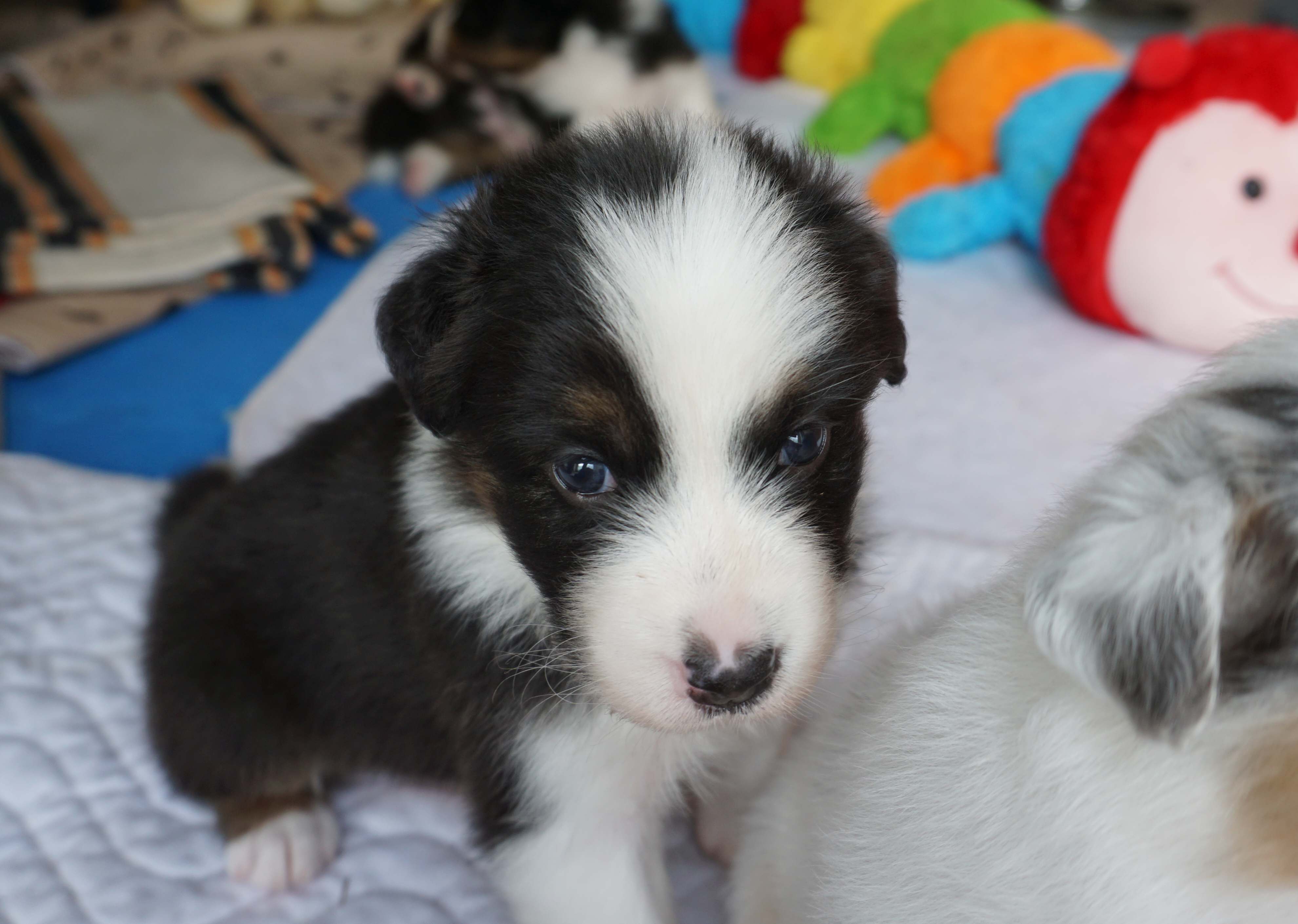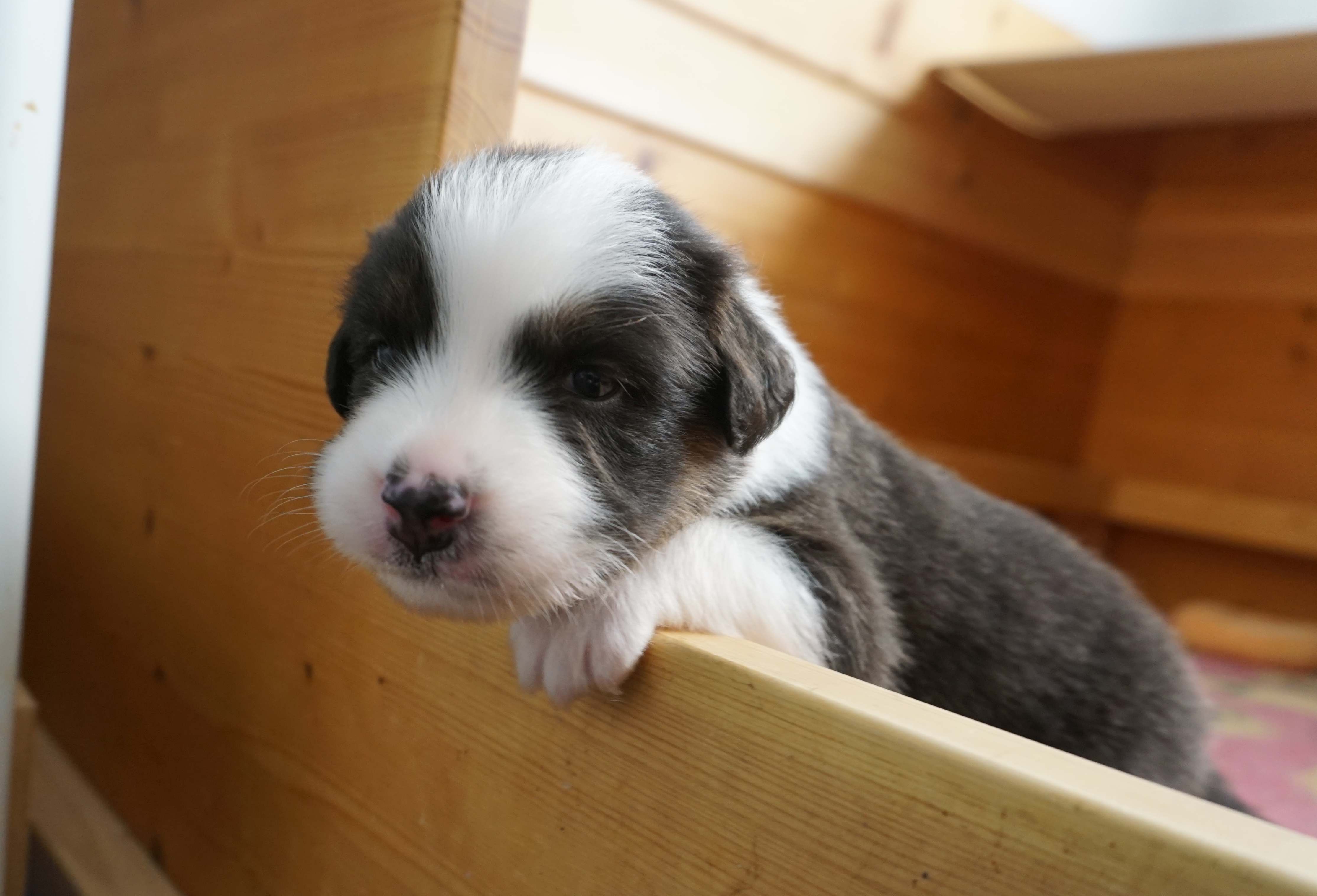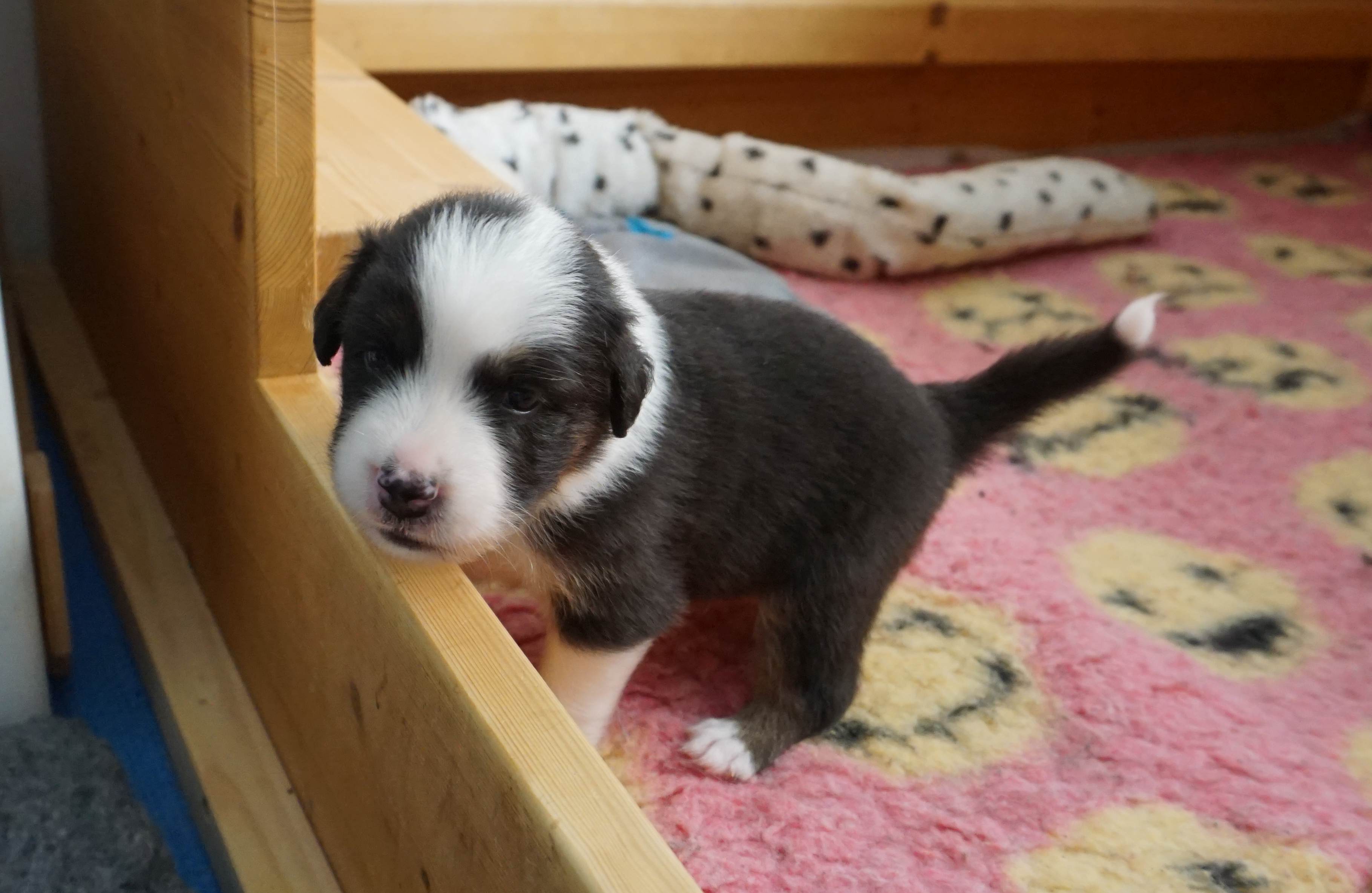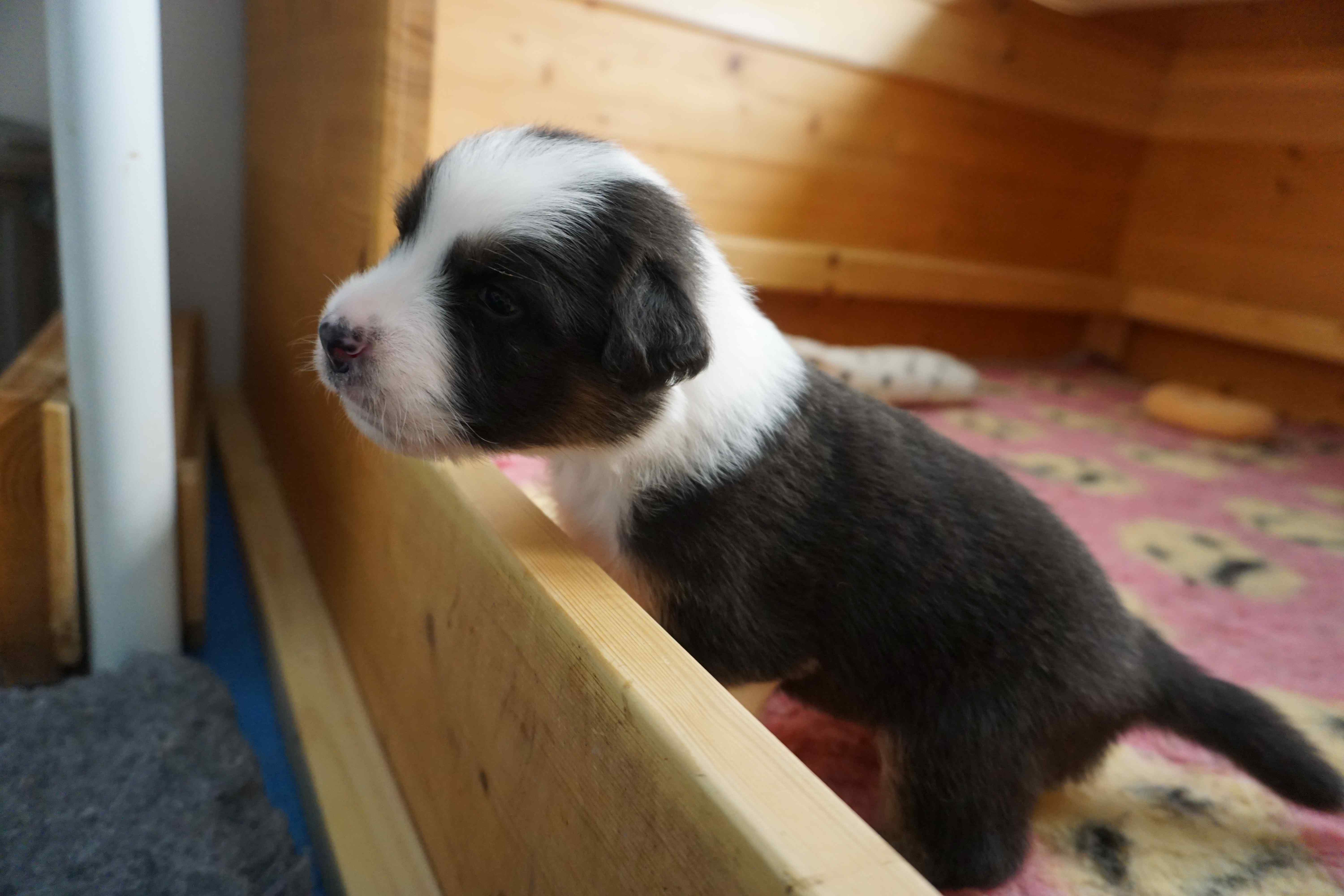 Als fünfter im J-Wurf wurde Jadoo geboren. Es war 2h 58 am 17. Mai 2024. Er ist ein black tri Rüde, der einer Mutter sehr ähnlich sieht. Gleich nach der Geburt wog er 316. Jadoo ist ein indischer Name und bedeutet „Magie“.