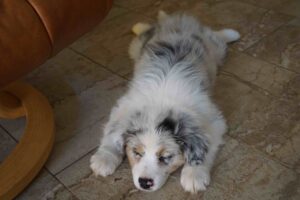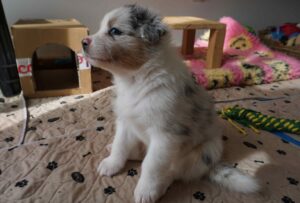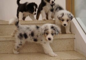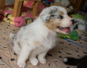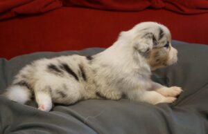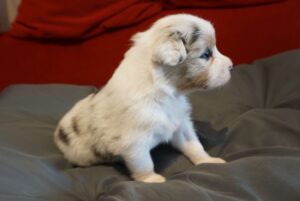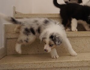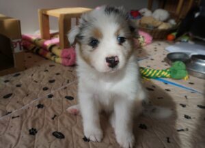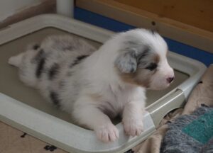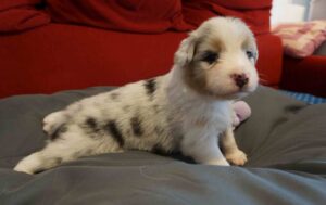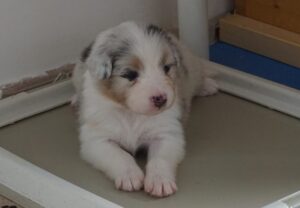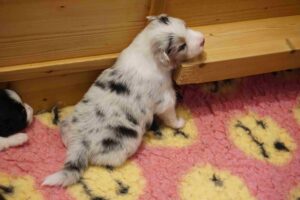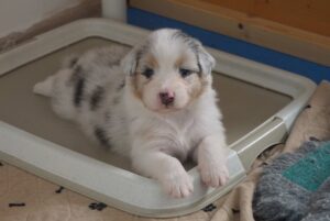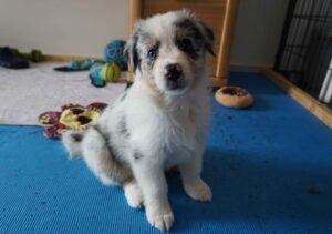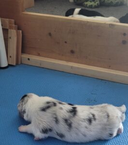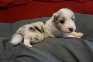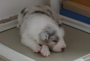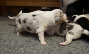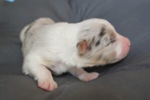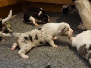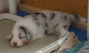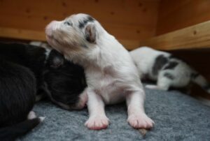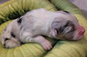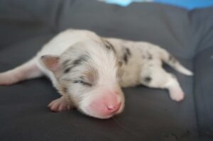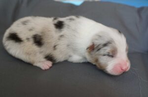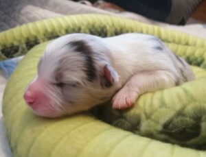 Es war der 17.Mai 2024 als Jamaika um 3h 47 in der Früh auf die Welt kam. Sie ist eine blue merle Hündin. Zur Geburt wog sie 294g.
