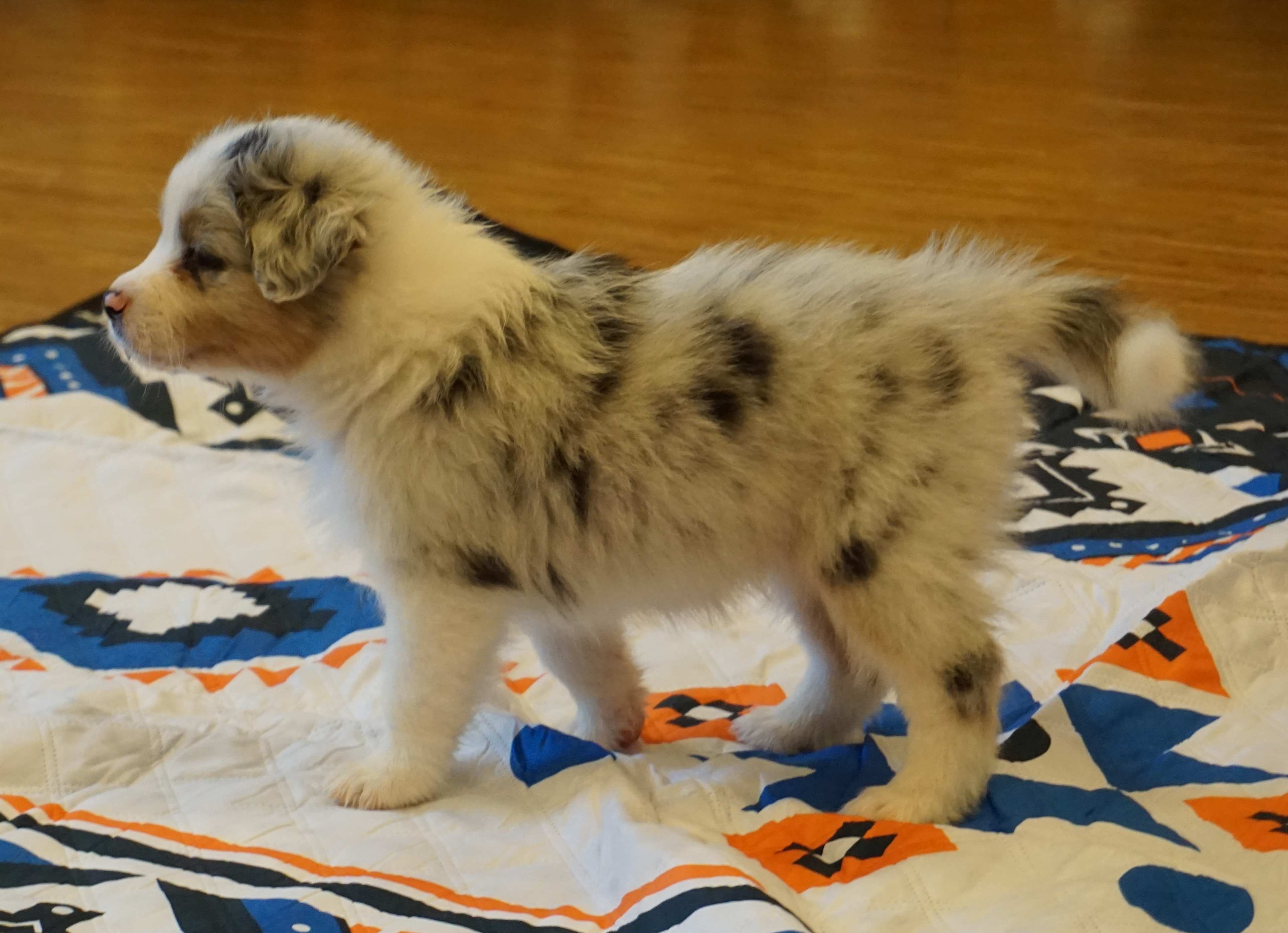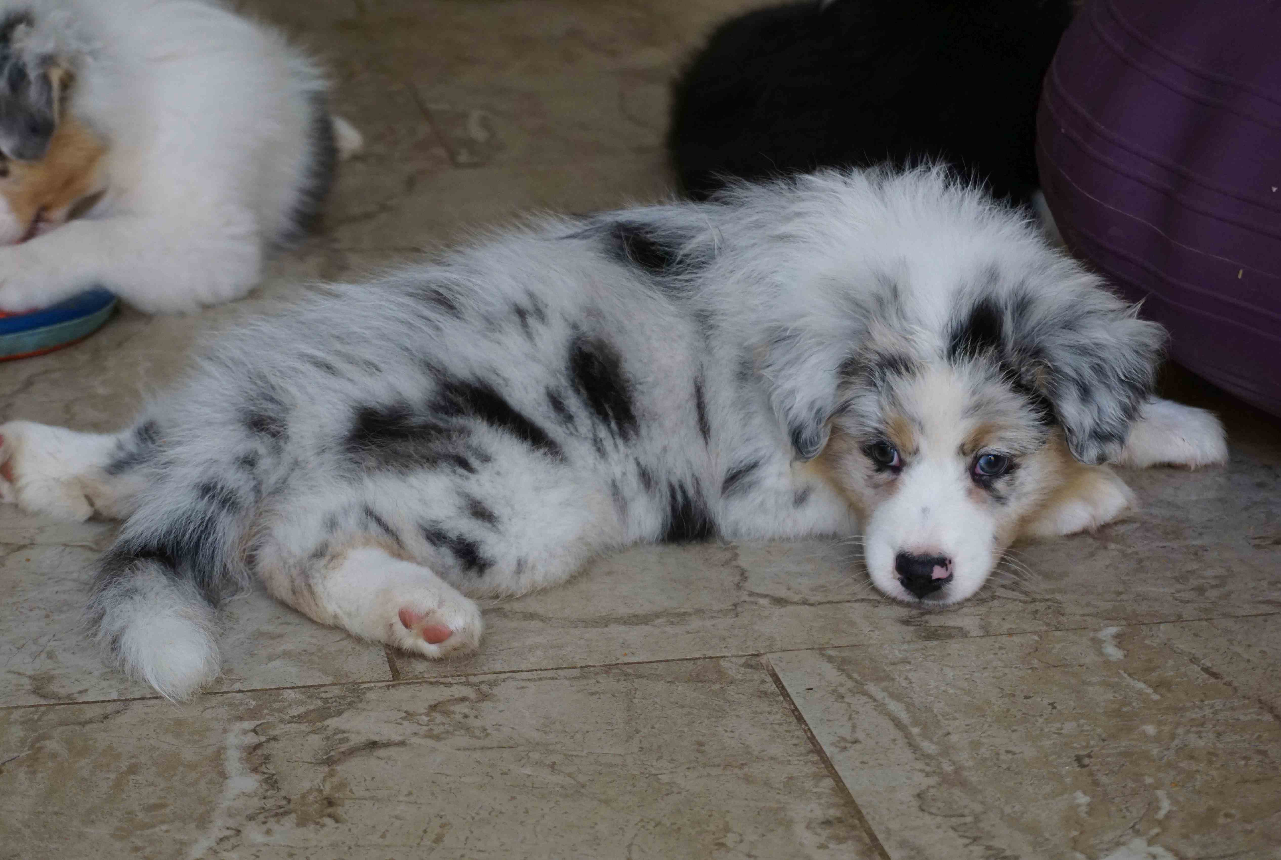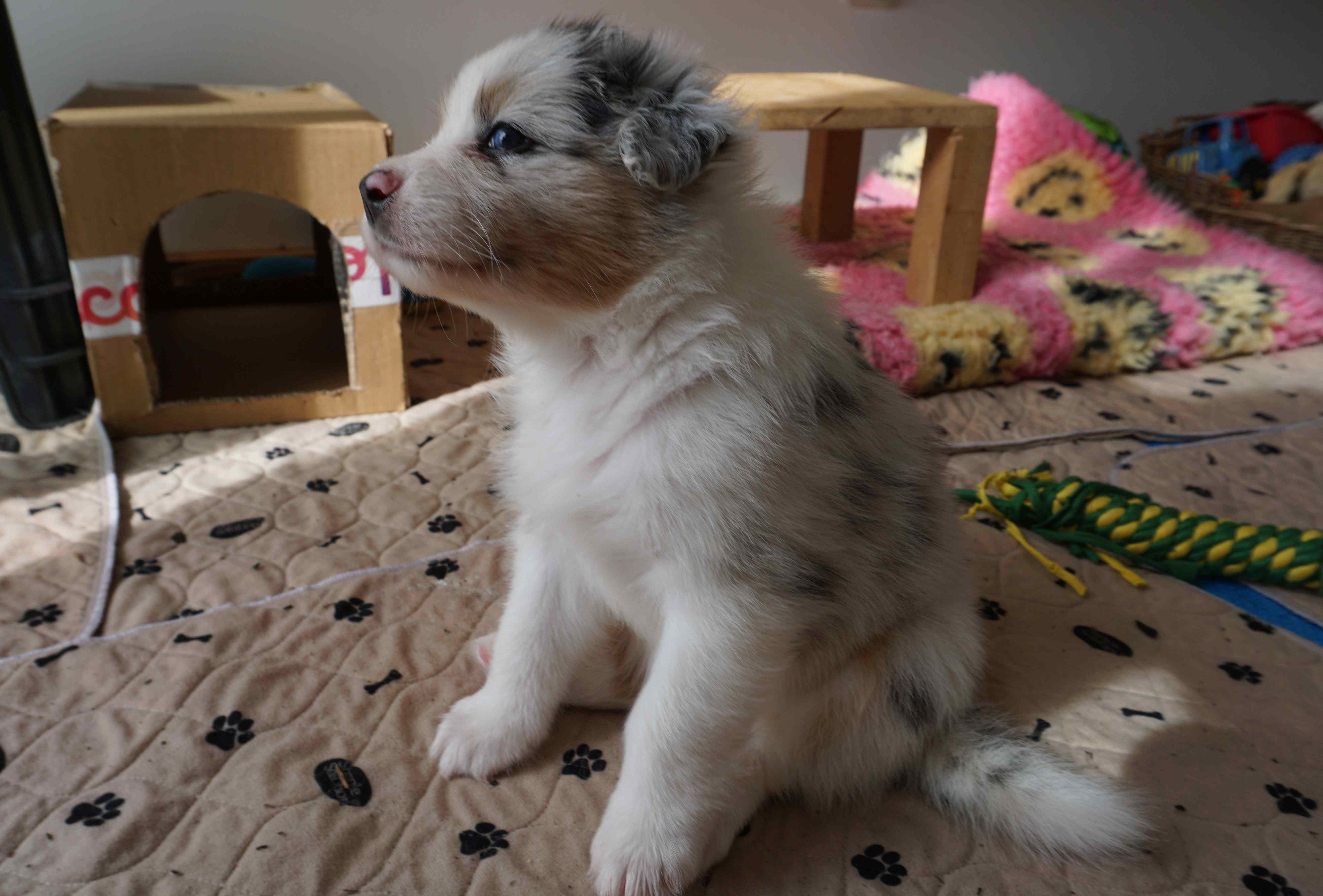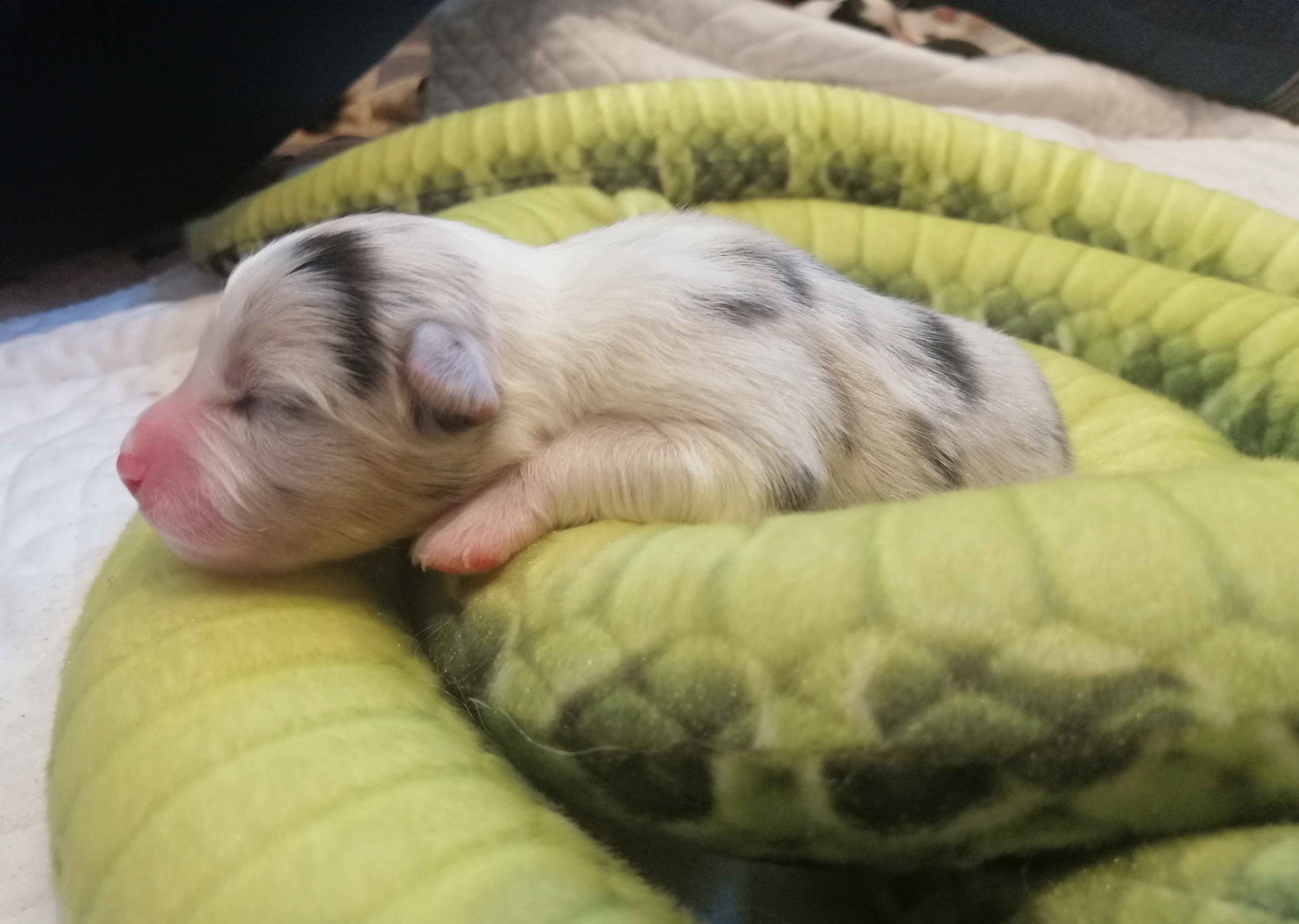 Es war der 17.Mai 2024 als Jamaika um 3h 47 in der Früh auf die Welt kam. Sie ist eine blue merle Hündin. Zur Geburt wog sie 294g.