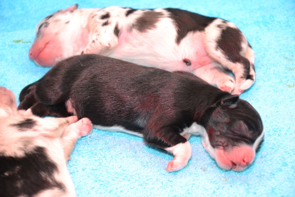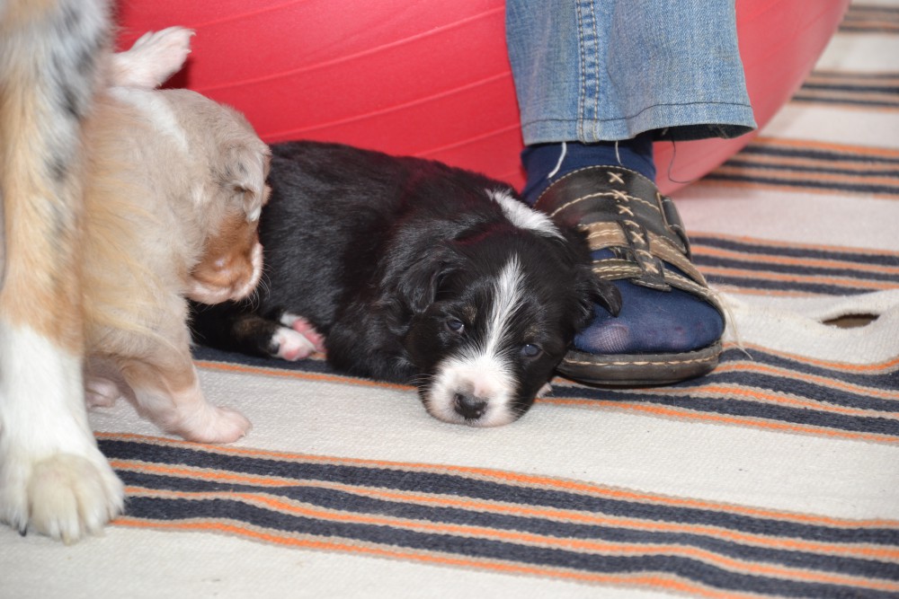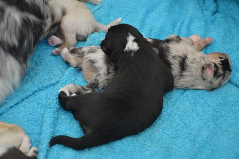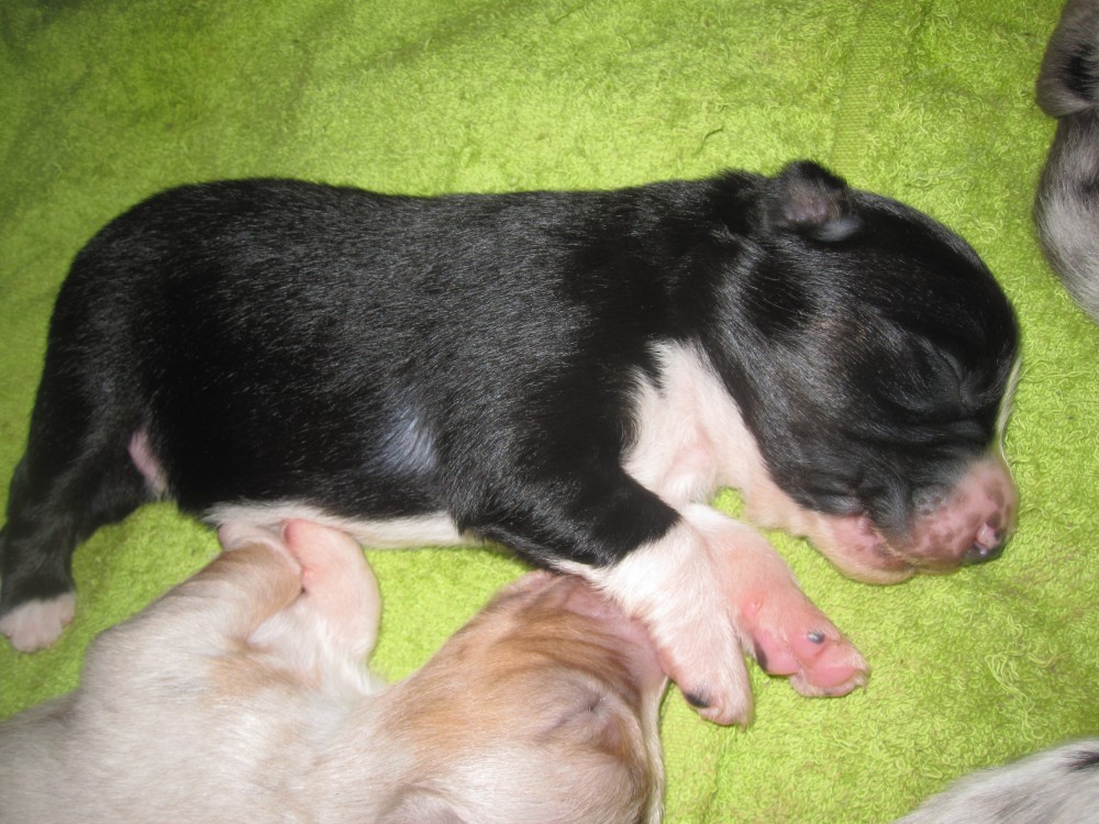 60. Tag: 5830g => einmal nicht ganz vorne! Gestern waren die Welpenuntersuchungen und Impfungen. Da waren alle heute etwas schaumgebremst und dem Einen oder Anderen war heute schlecht! So gabs heute beim Gewicht ein paar Rückschläge.