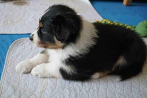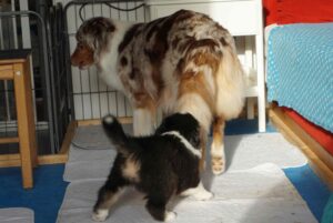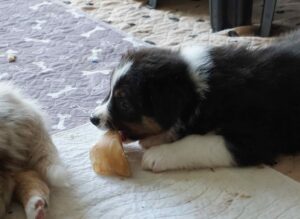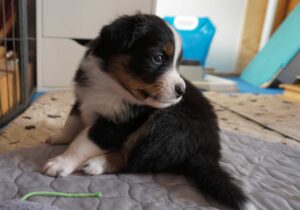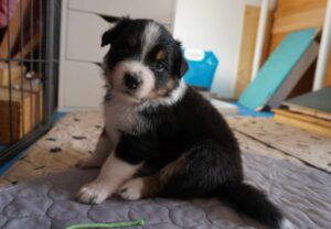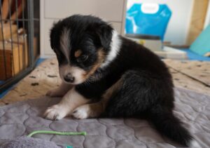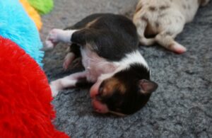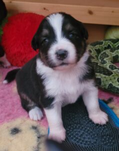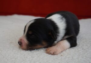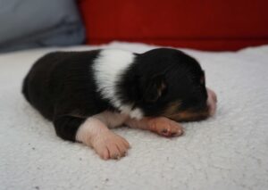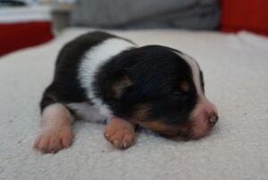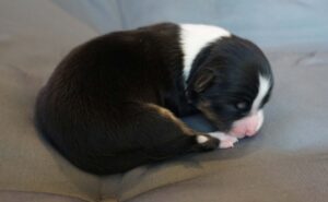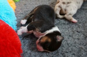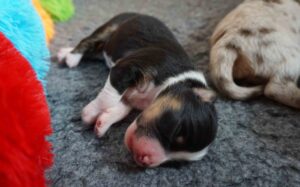 Es war 7:50 am 30.12.2024 als Karma Shania im K-Wurf von Benazir geboren wurde. Sie ist ein black tri Mädchen. Sie wog bei der Geburt 267g. Ihr besonderes Merkmal sind das weisse Halstuch und die beiden schwarzen! Punkte am Bauch.