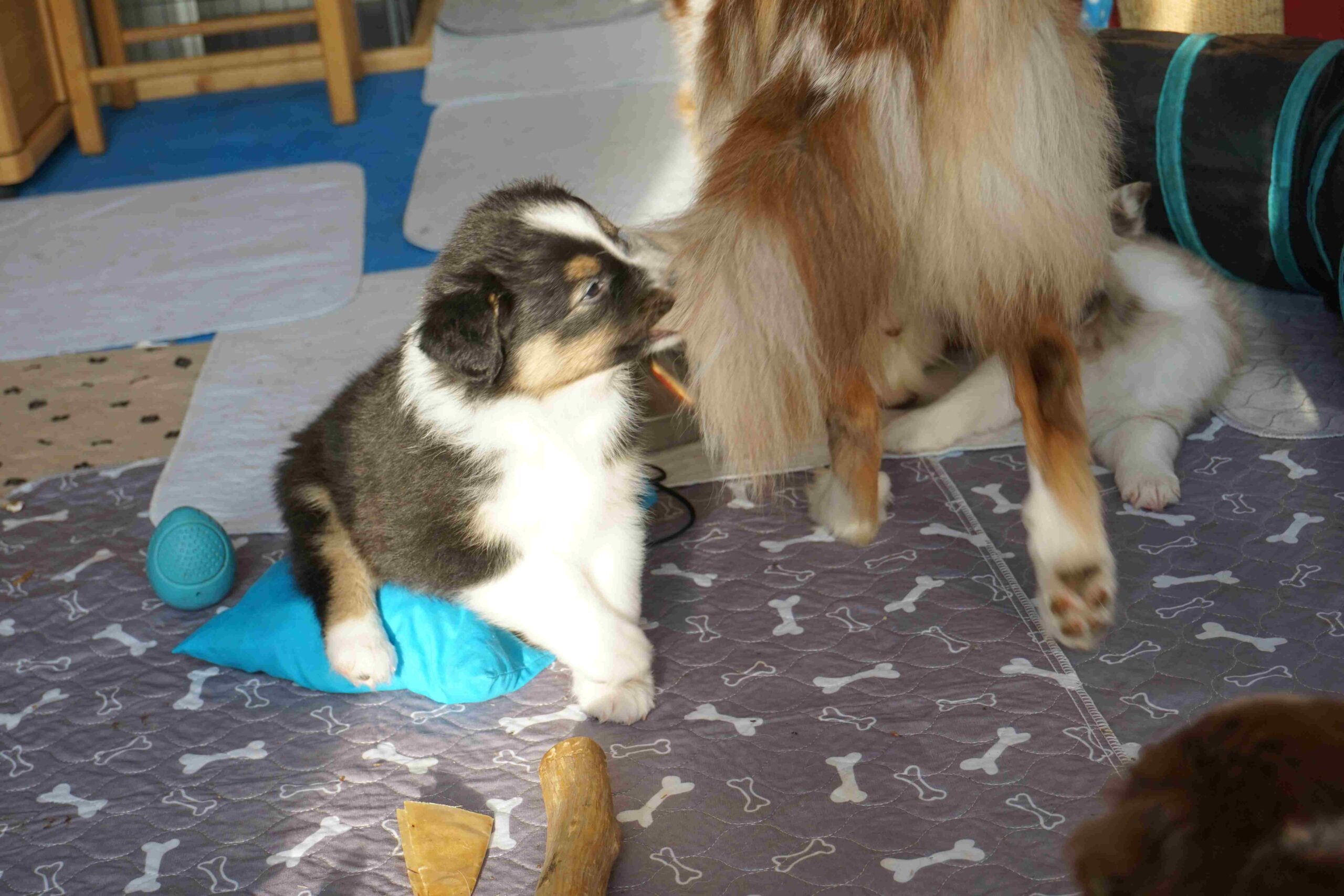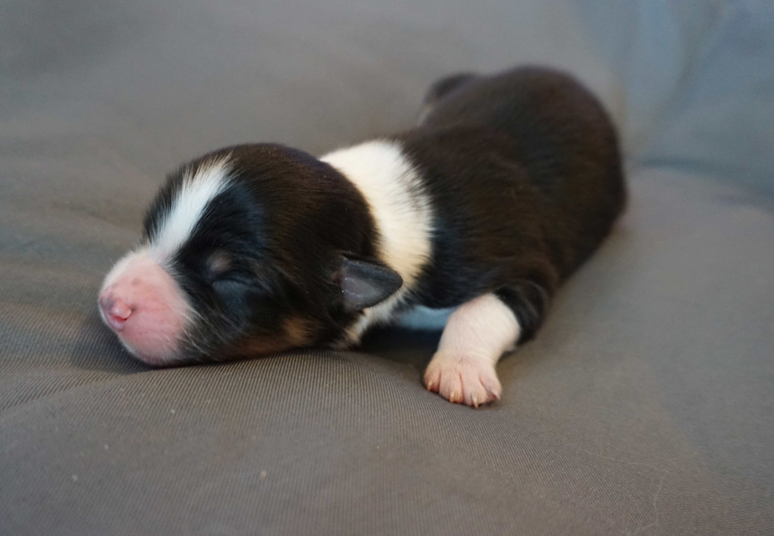 Es war 7:50 am 30.12.2024 als Karma Shania im K-Wurf von Benazir geboren wurde. Sie ist ein black tri Mädchen. Sie wog bei der Geburt 267g. Ihr besonderes Merkmal sind das weisse Halstuch und die beiden schwarzen! Punkte am Bauch.