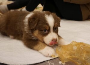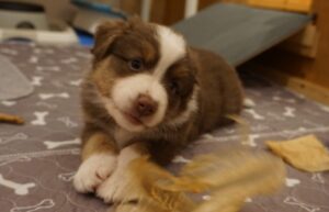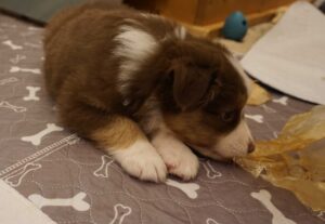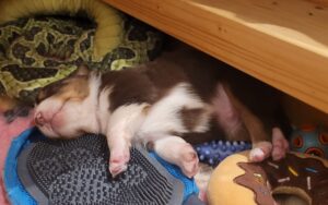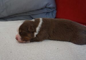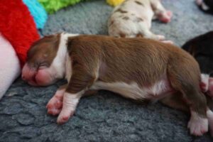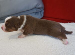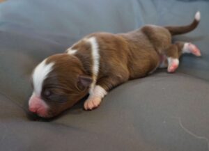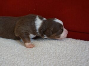 Den Abschluss von Benazir’s K-Wurf machte Kenia Zora am 30.12.2024 um 11:00. Sie ist ein red tri Mädchen. sie wog bei der Geburt 352g und war somit die schwerste des Wurfes. Man erkennt sie am kleinen roten Keil oben im Gesichtsstreifen und an dem besonders gezackten Streifen des zwischen den Schultern. Ihr Braun ist insgesammt etwas heller als das von Kingsley.