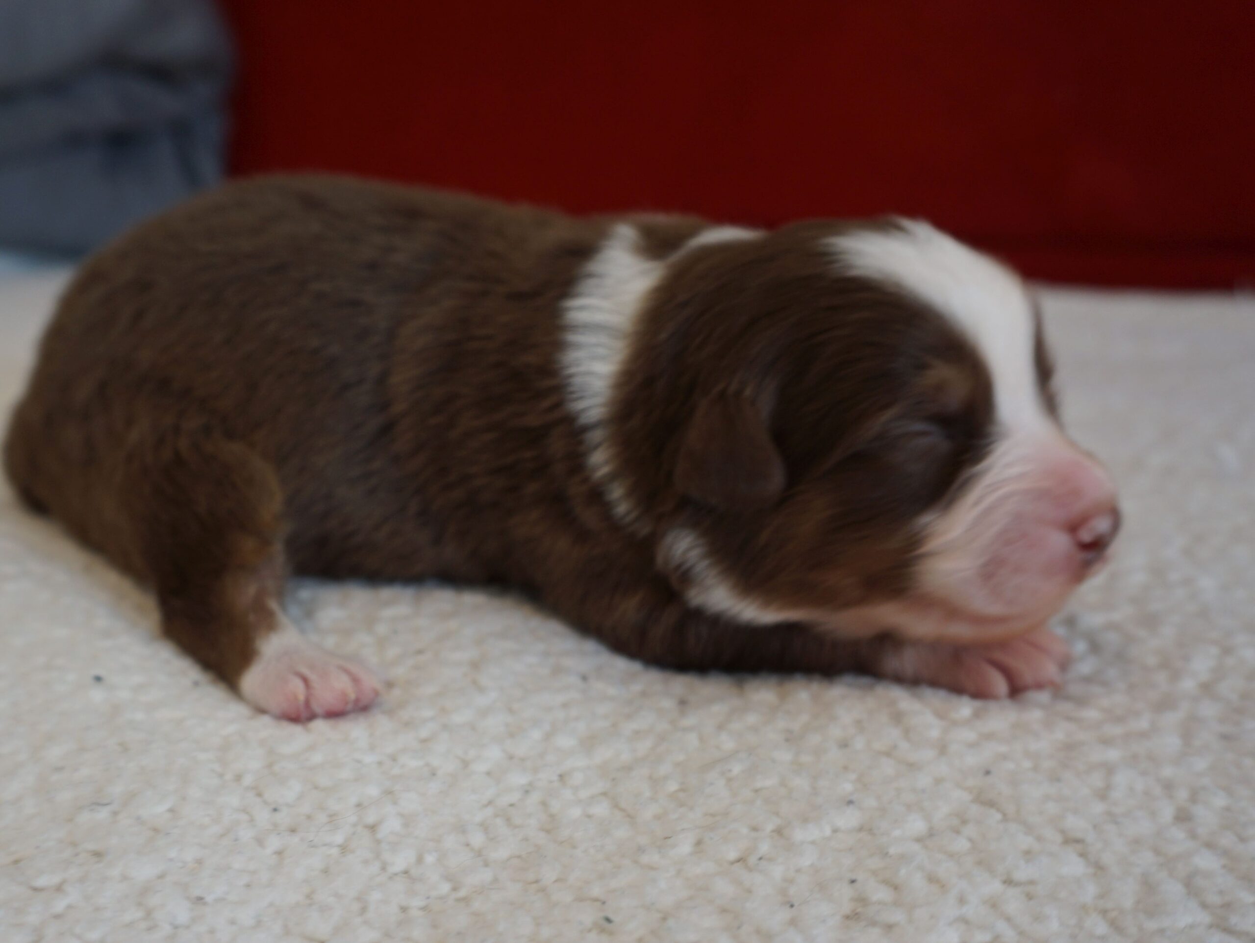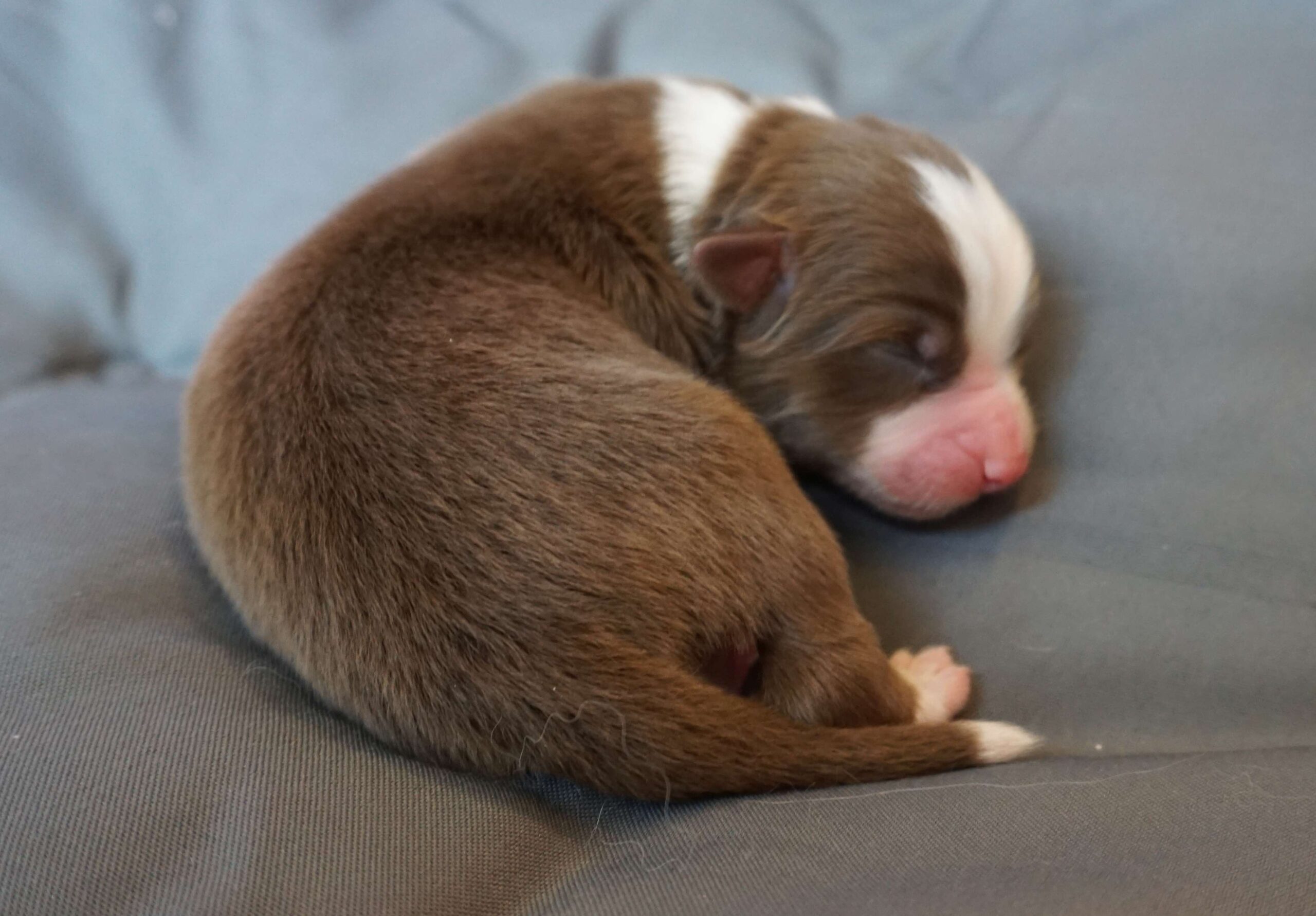 Den Abschluss von Benazir’s K-Wurf machte Kenia Zora am 30.12.2024 um 11:00. Sie ist ein red tri Mädchen. sie wog bei der Geburt 352g und war somit die schwerste des Wurfes. Man erkennt sie am kleinen roten Keil oben im Gesichtsstreifen und an dem besonders gezackten Streifen des zwischen den Schultern. Ihr Braun ist insgesammt etwas heller als das von Kingsley.