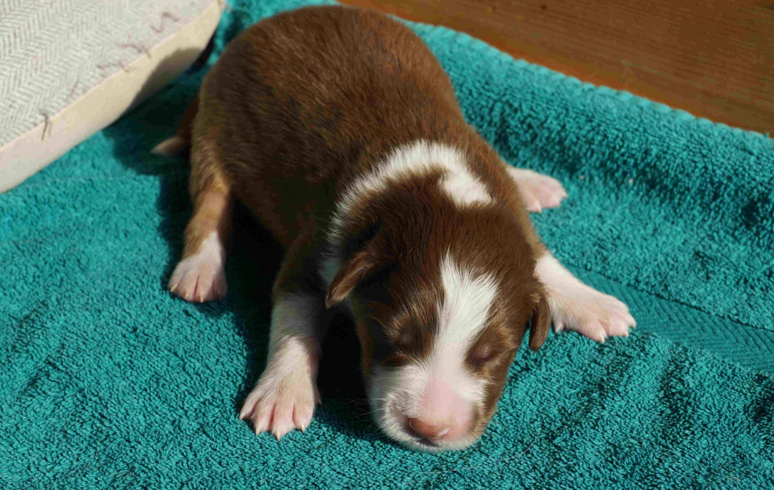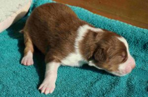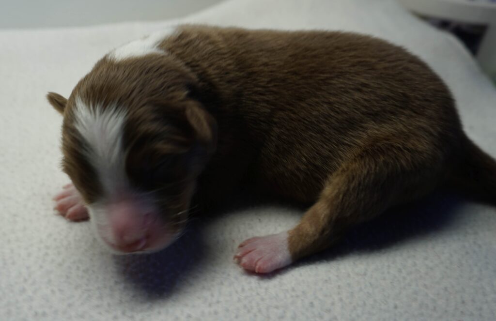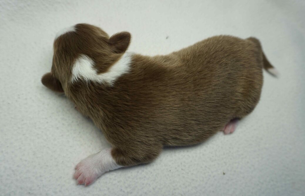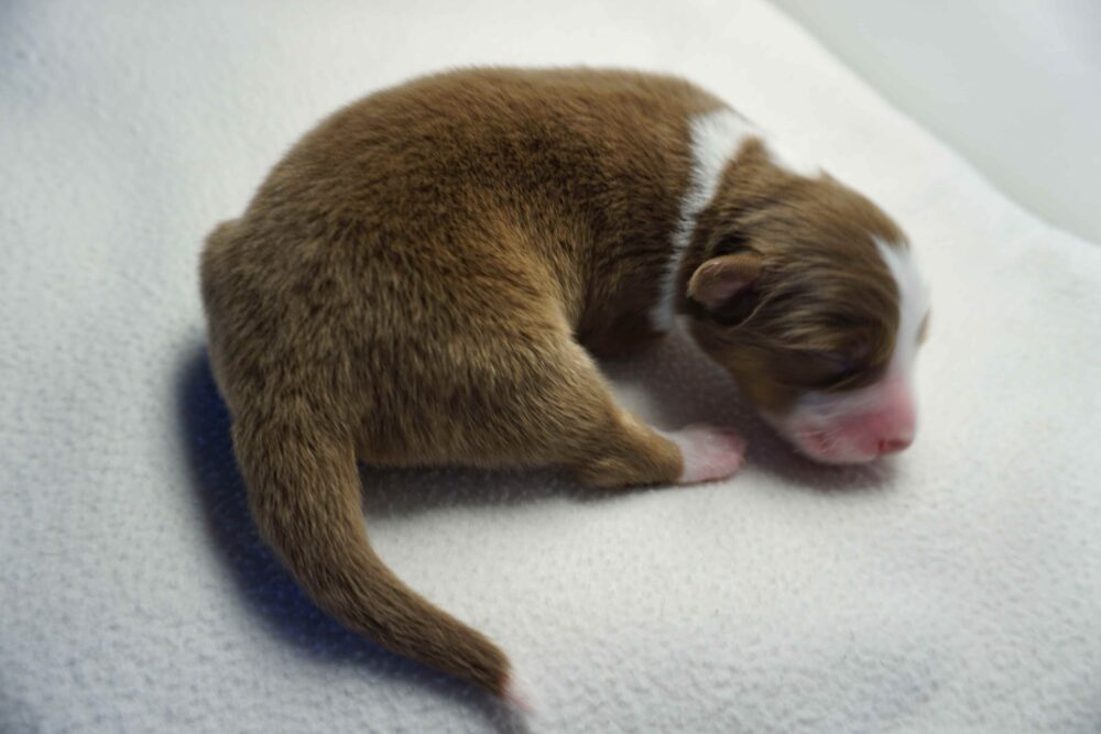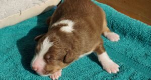 Lares ist ein Rüde aus dem L-Wurf von Dhanavati. Er wurde am 14.3.2026 um 8:20 geboren. Seine Farbe ist red-tri. Er wog bei der Geburt 356g und war der Zweitschwerste des Wurfes.